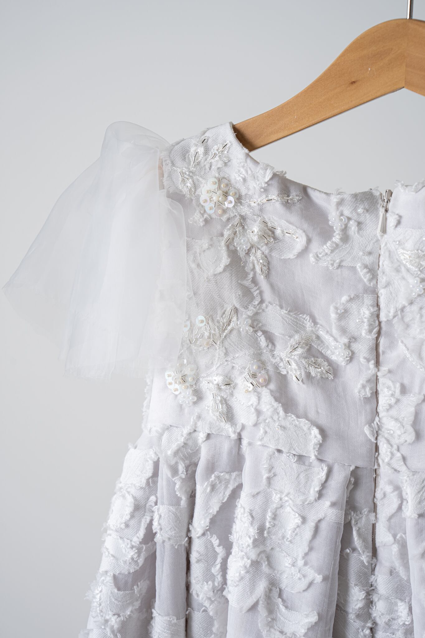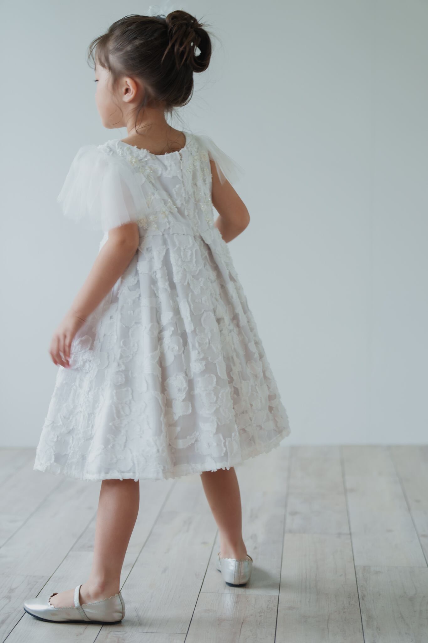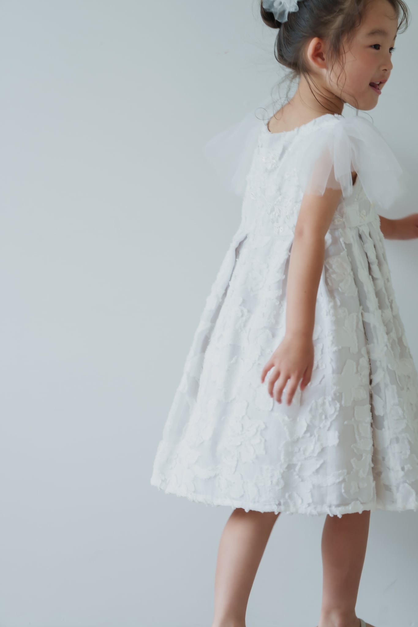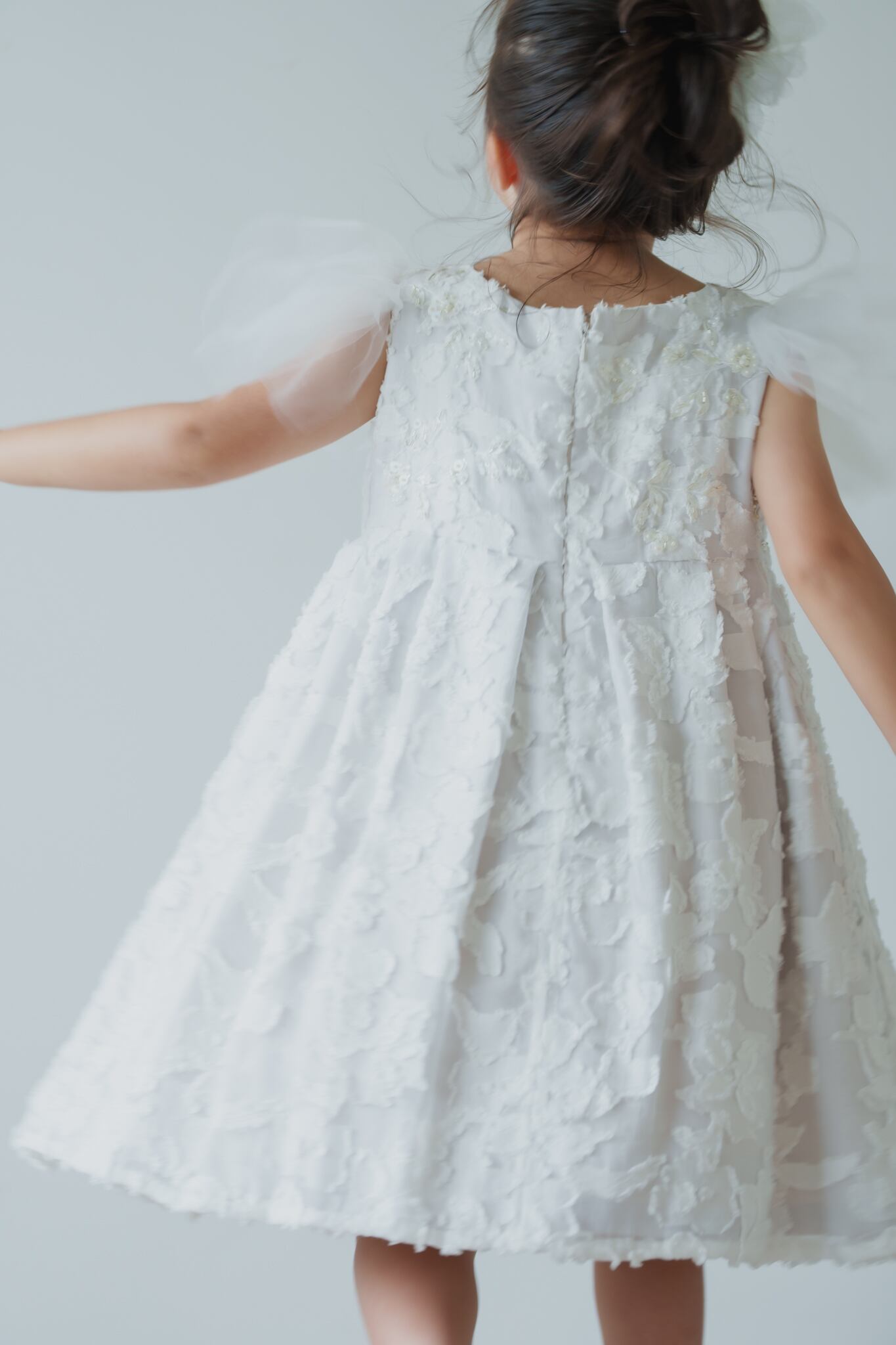 シルバーや乳白色、透明のビーズを散らして縫い付けました。とろけそうな柔らかいお袖も特徴です。