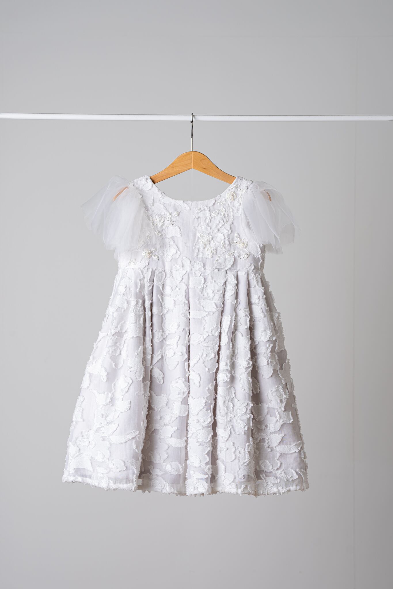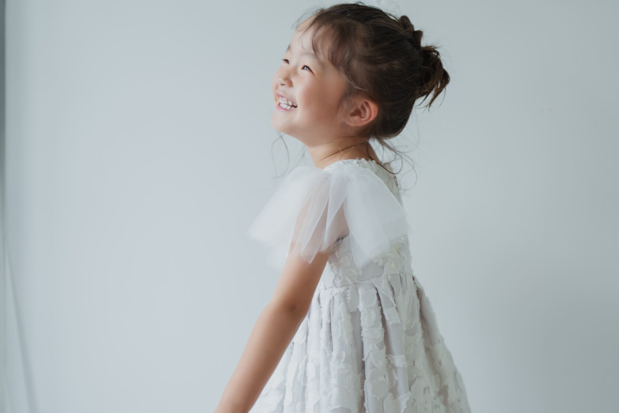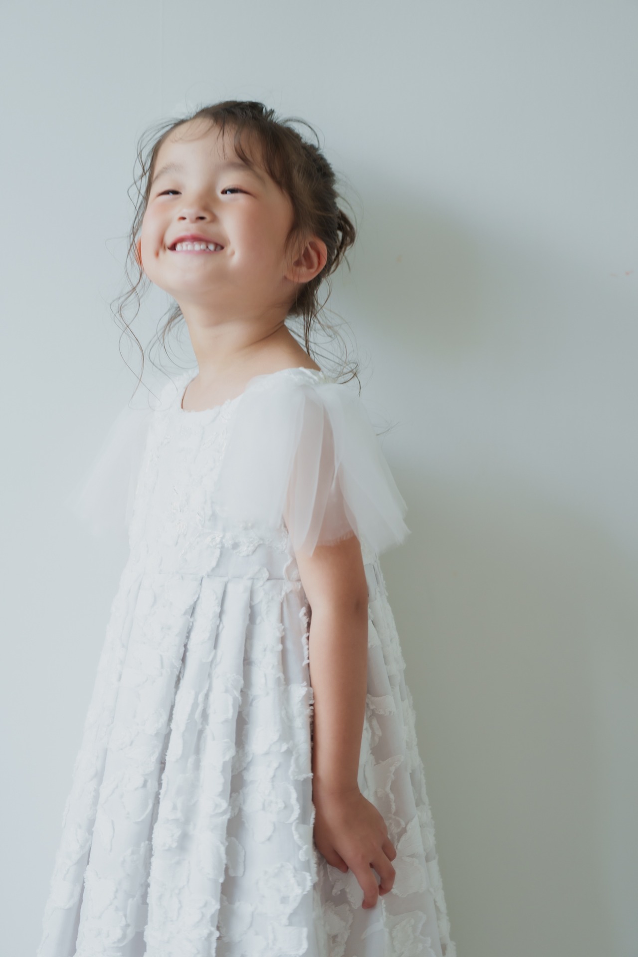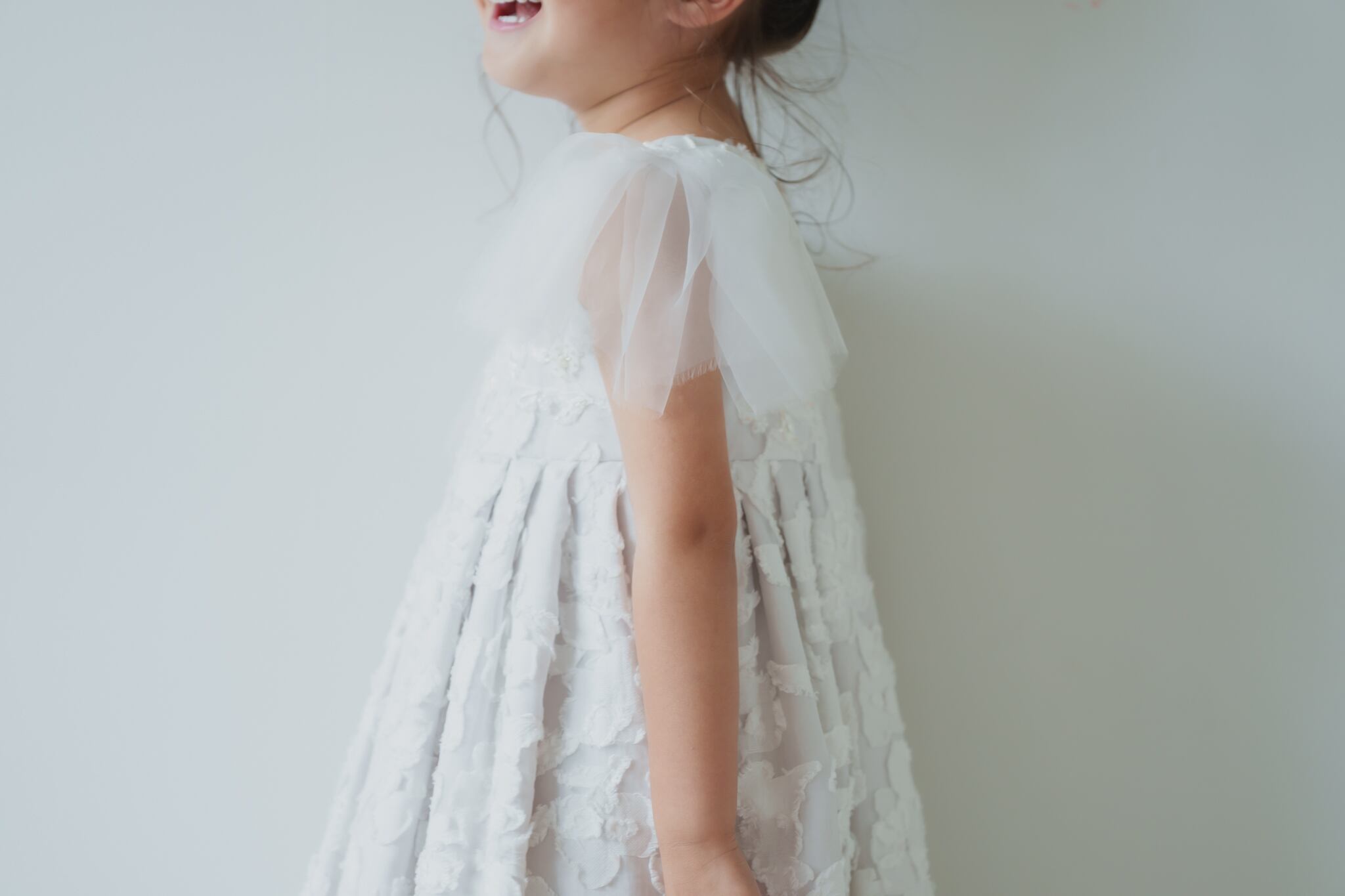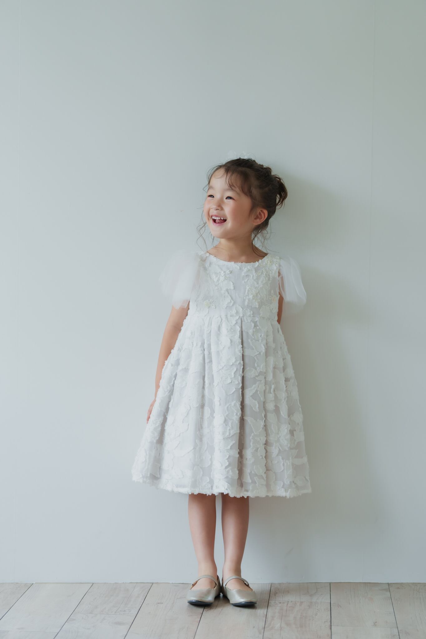 シルバーや乳白色、透明のビーズを散らして縫い付けました。とろけそうな柔らかいお袖も特徴です。