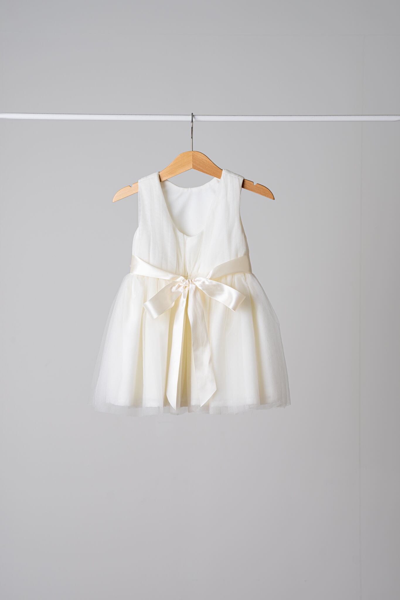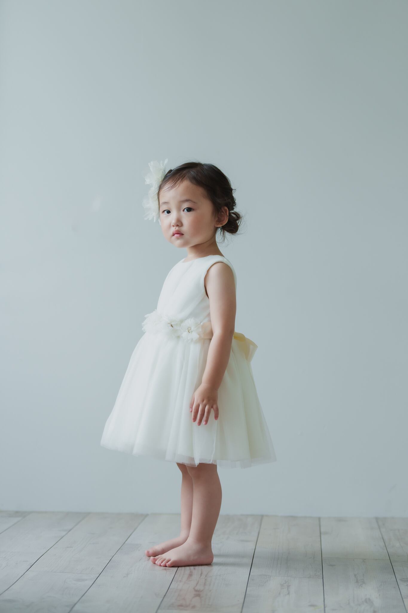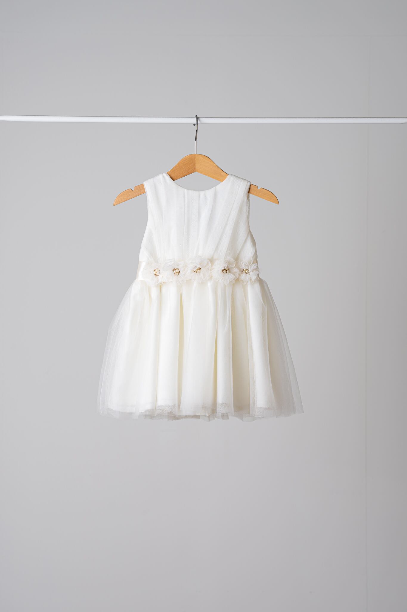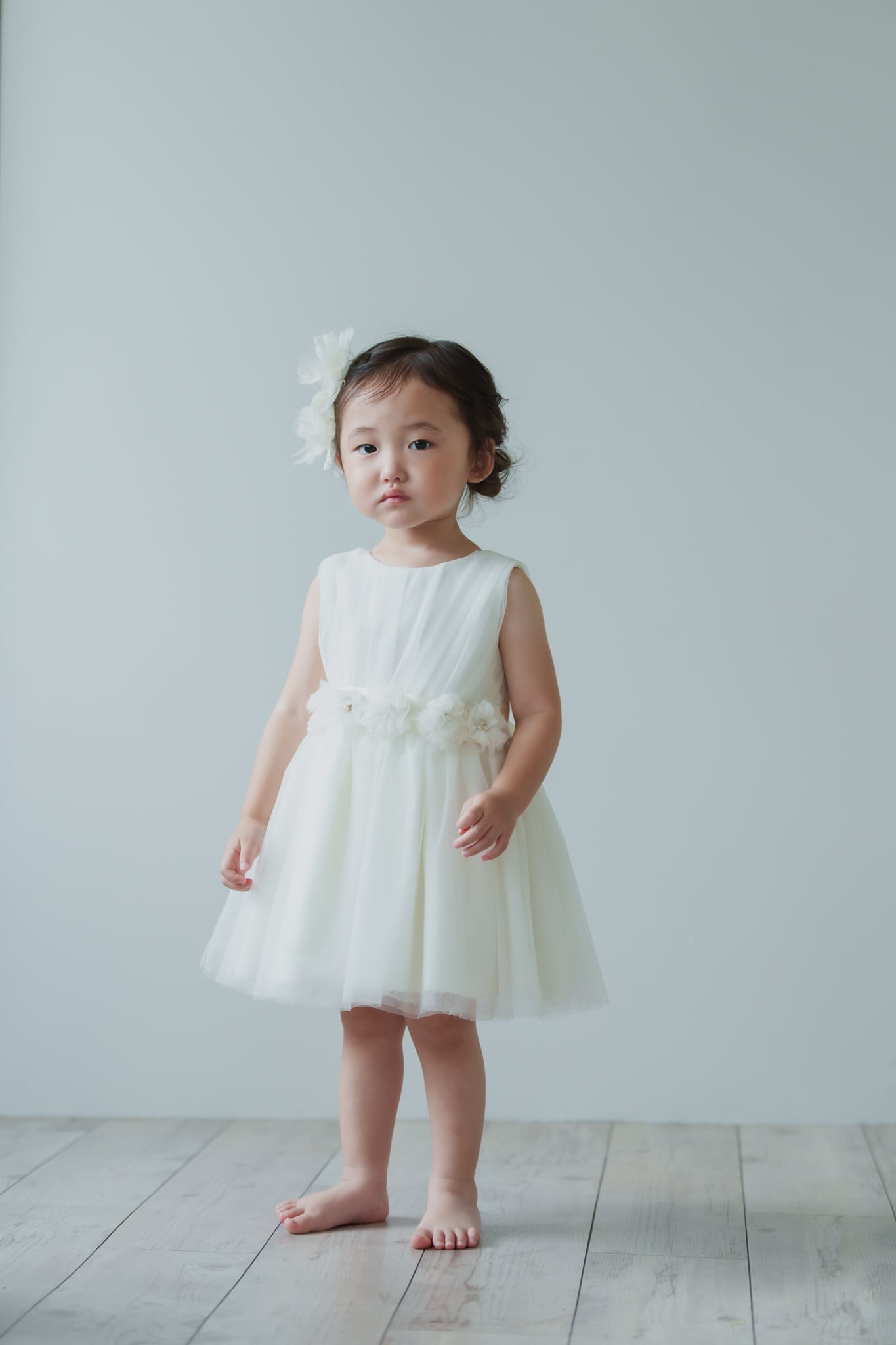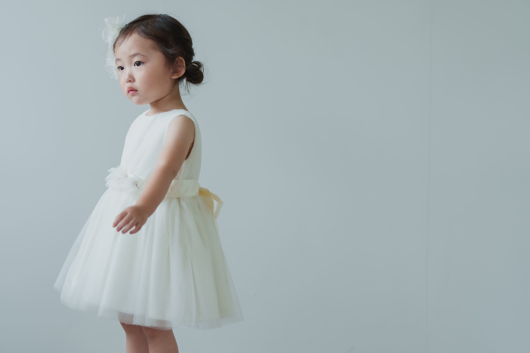 サッシュベルトのコサージュはひとつひとつ、ドレスのチュール、ビジューとパールを使い全て手づくりで丁寧にお作りしています。