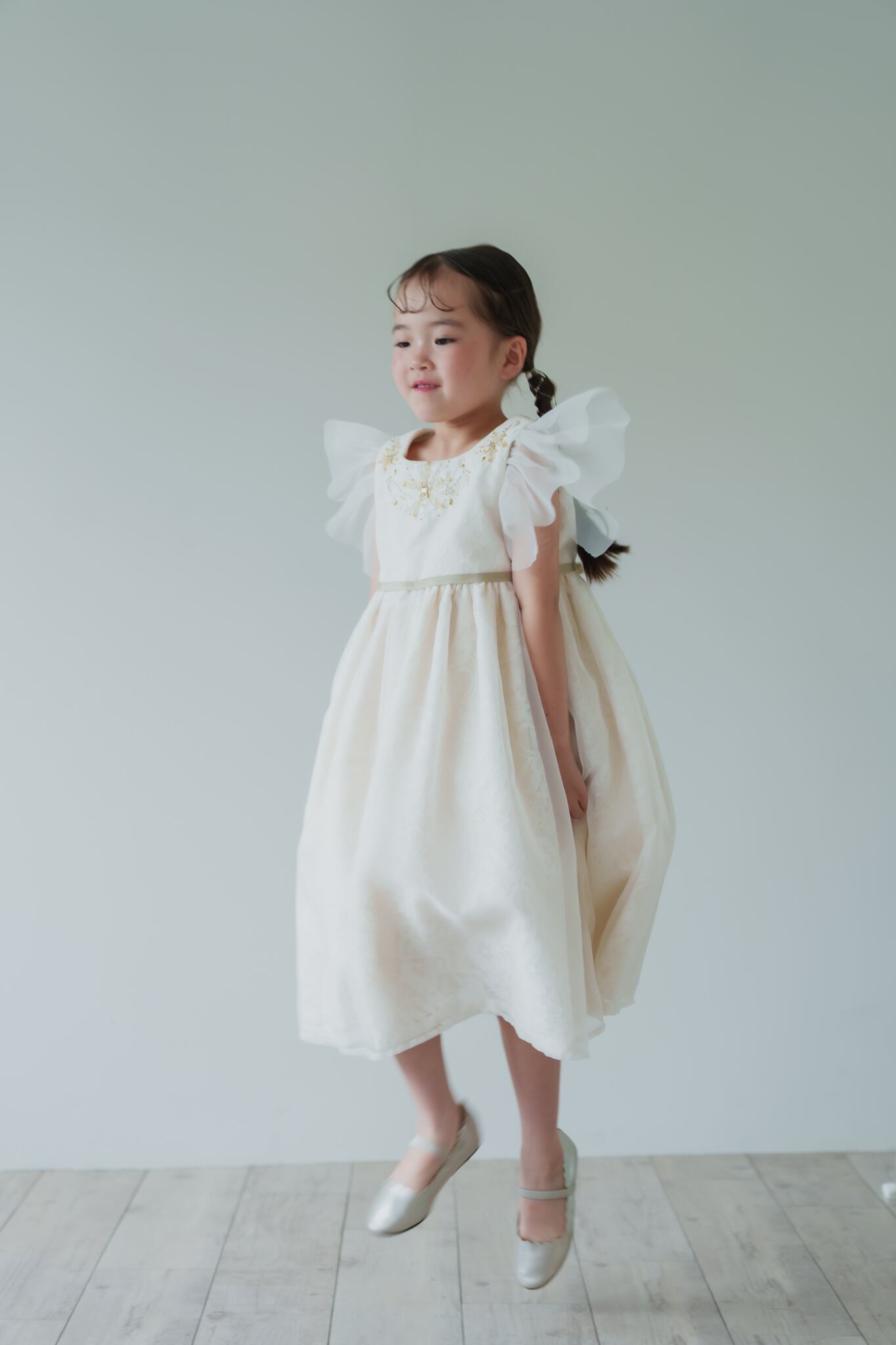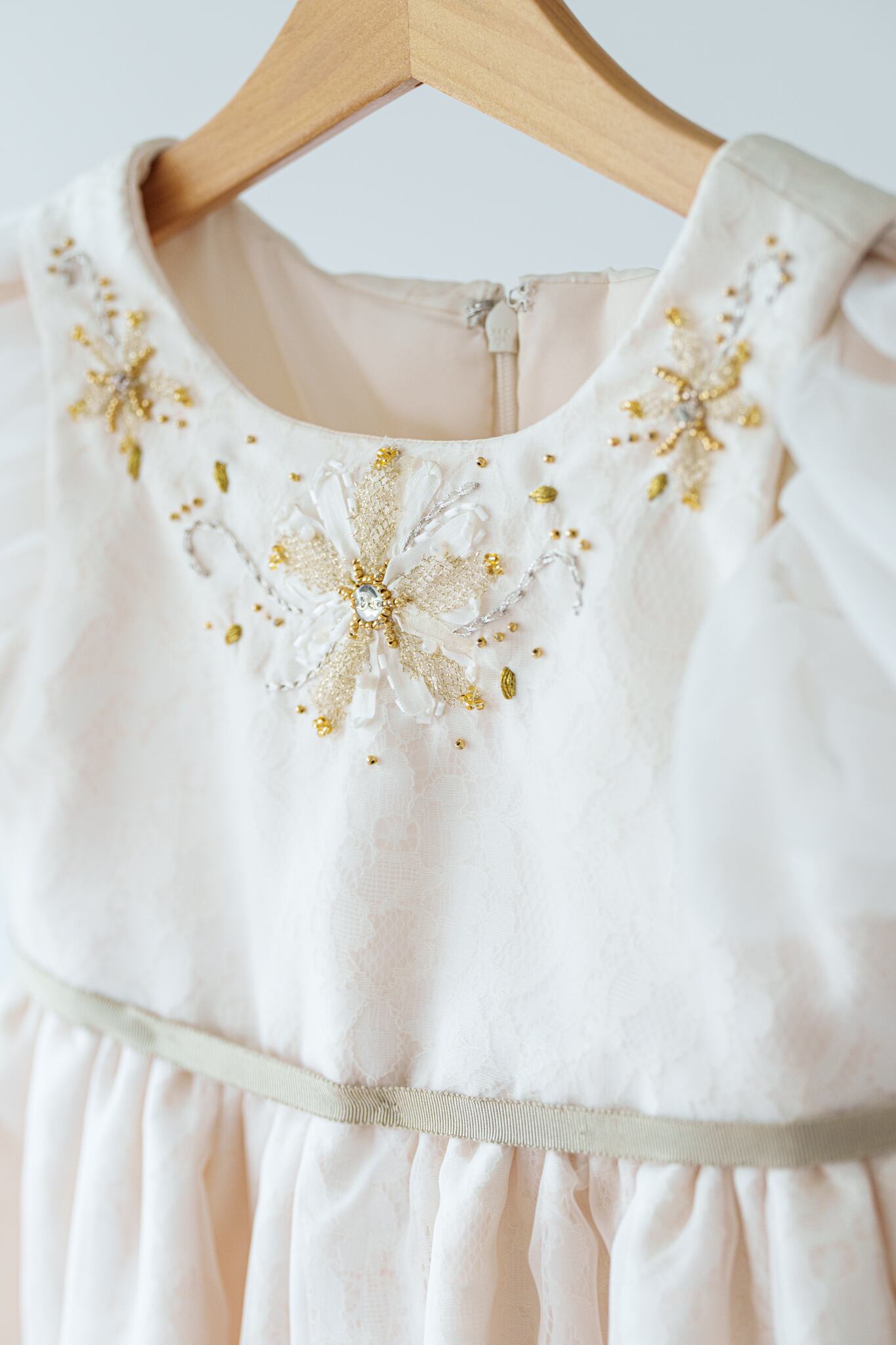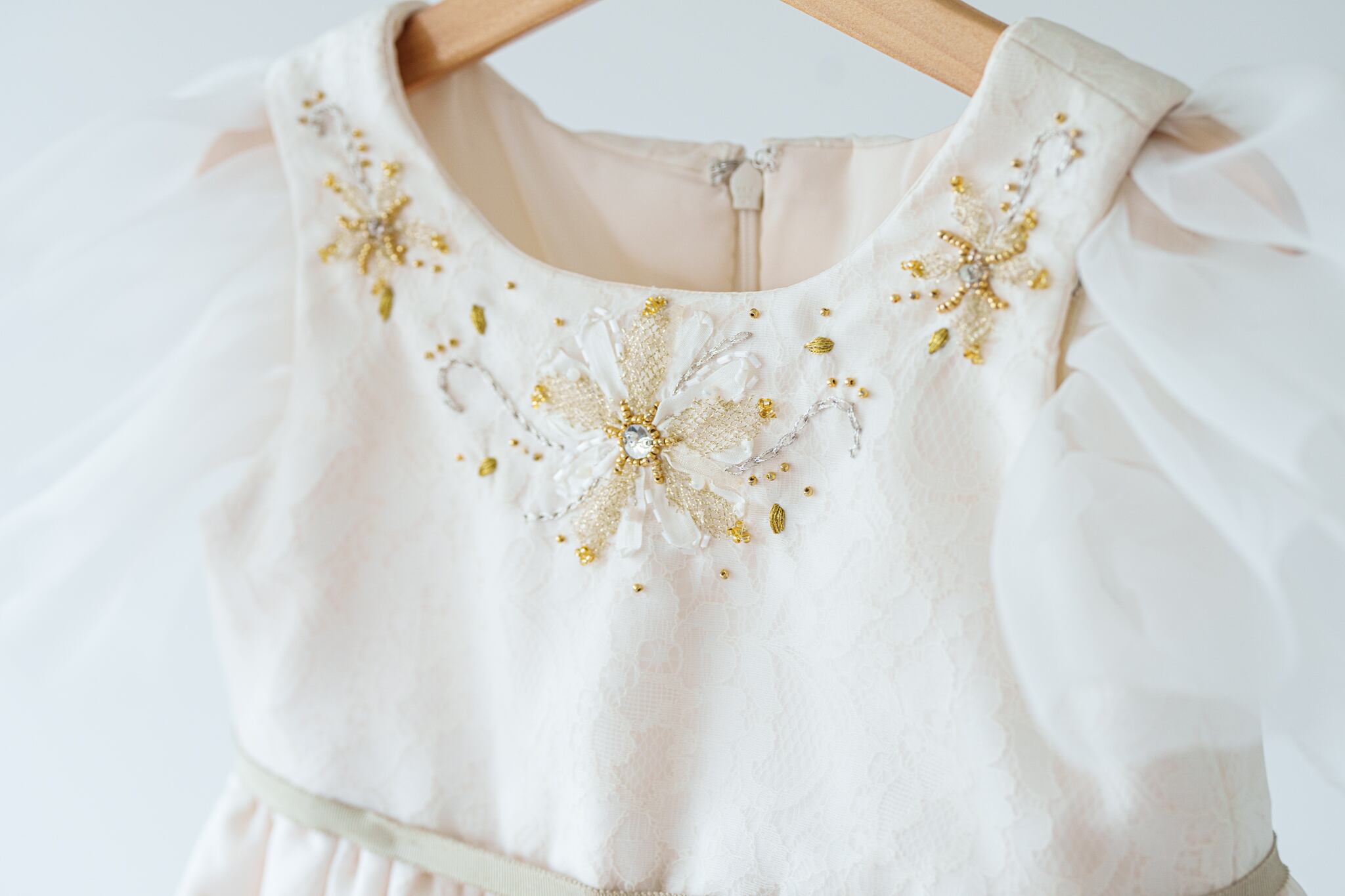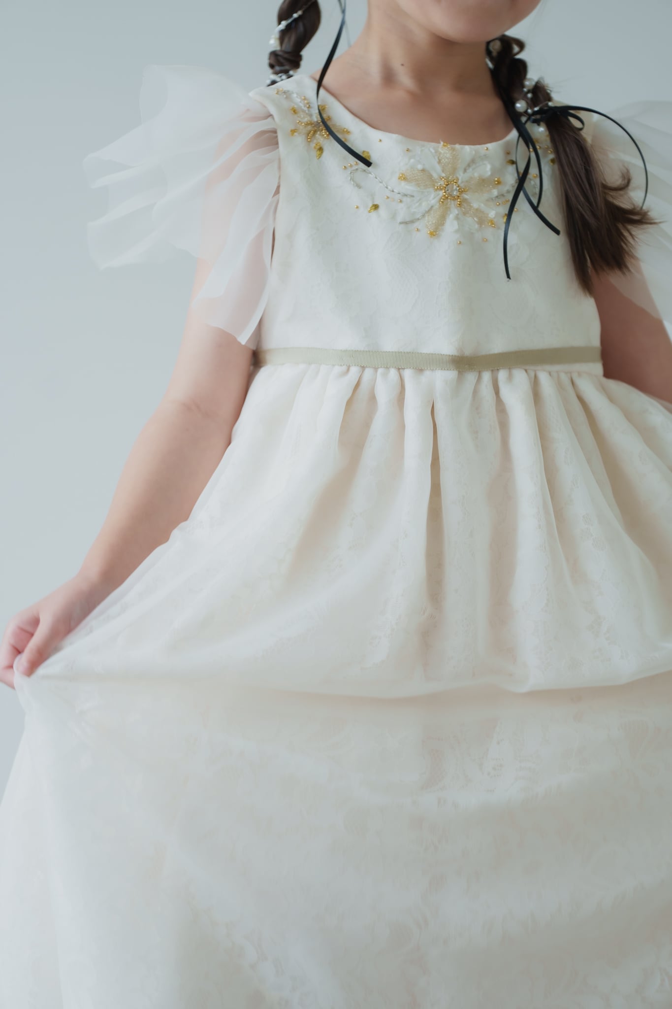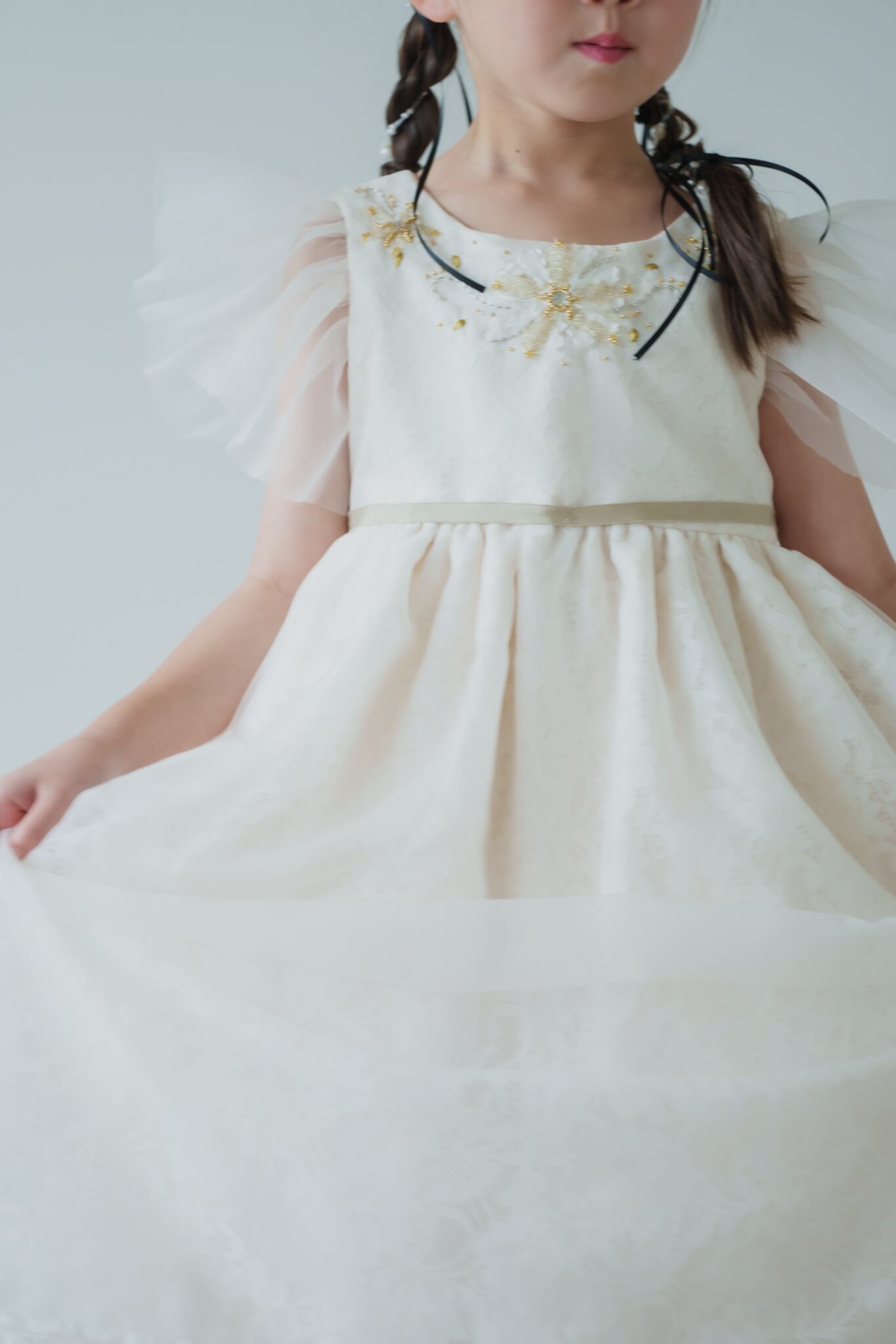 胸元にはゴールド・シルバーをミックスしたビーズの細工・手刺繍を施し華やかな印象に仕上がりました。