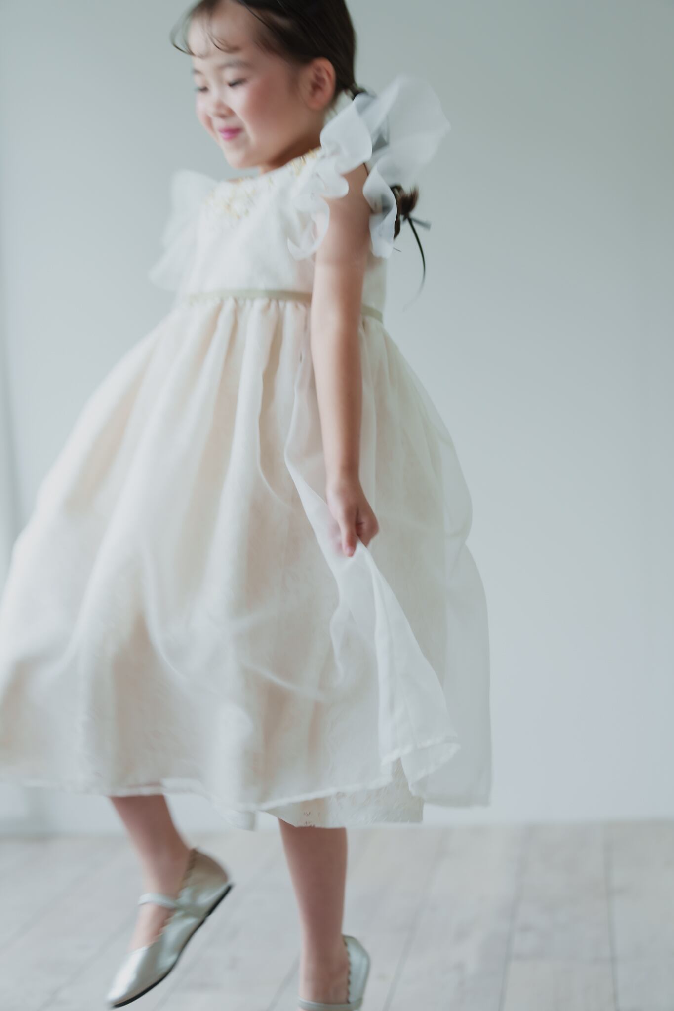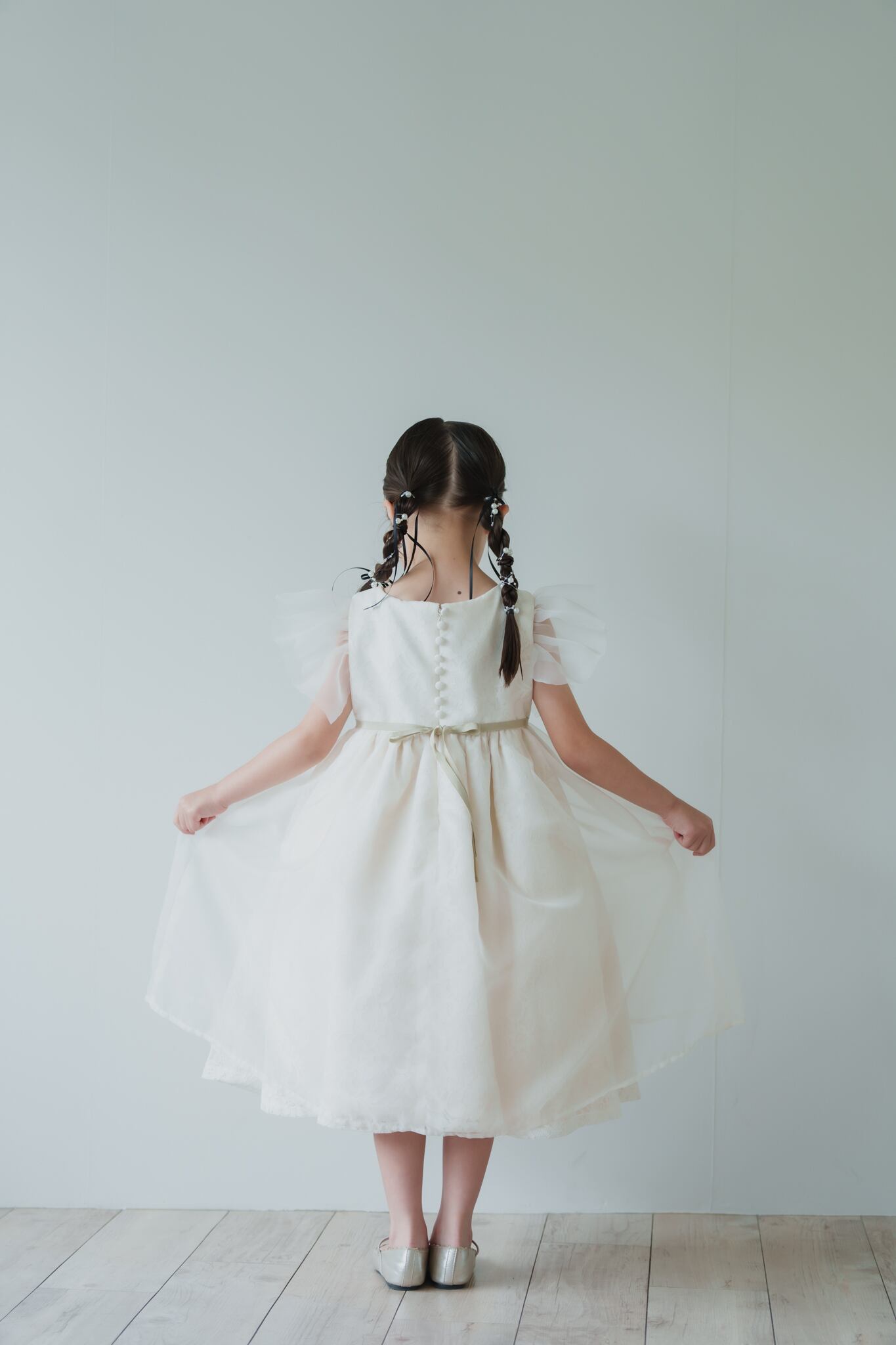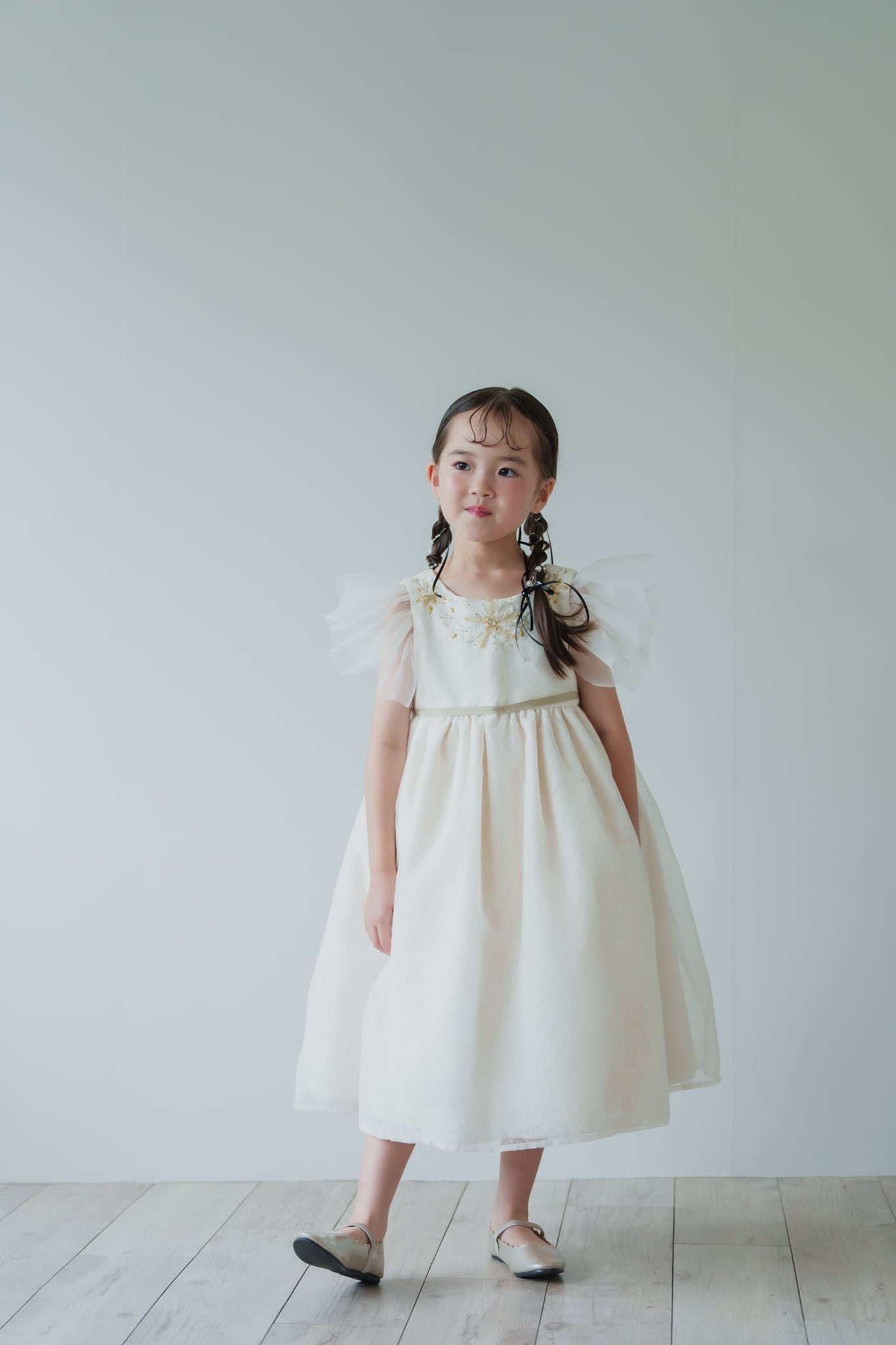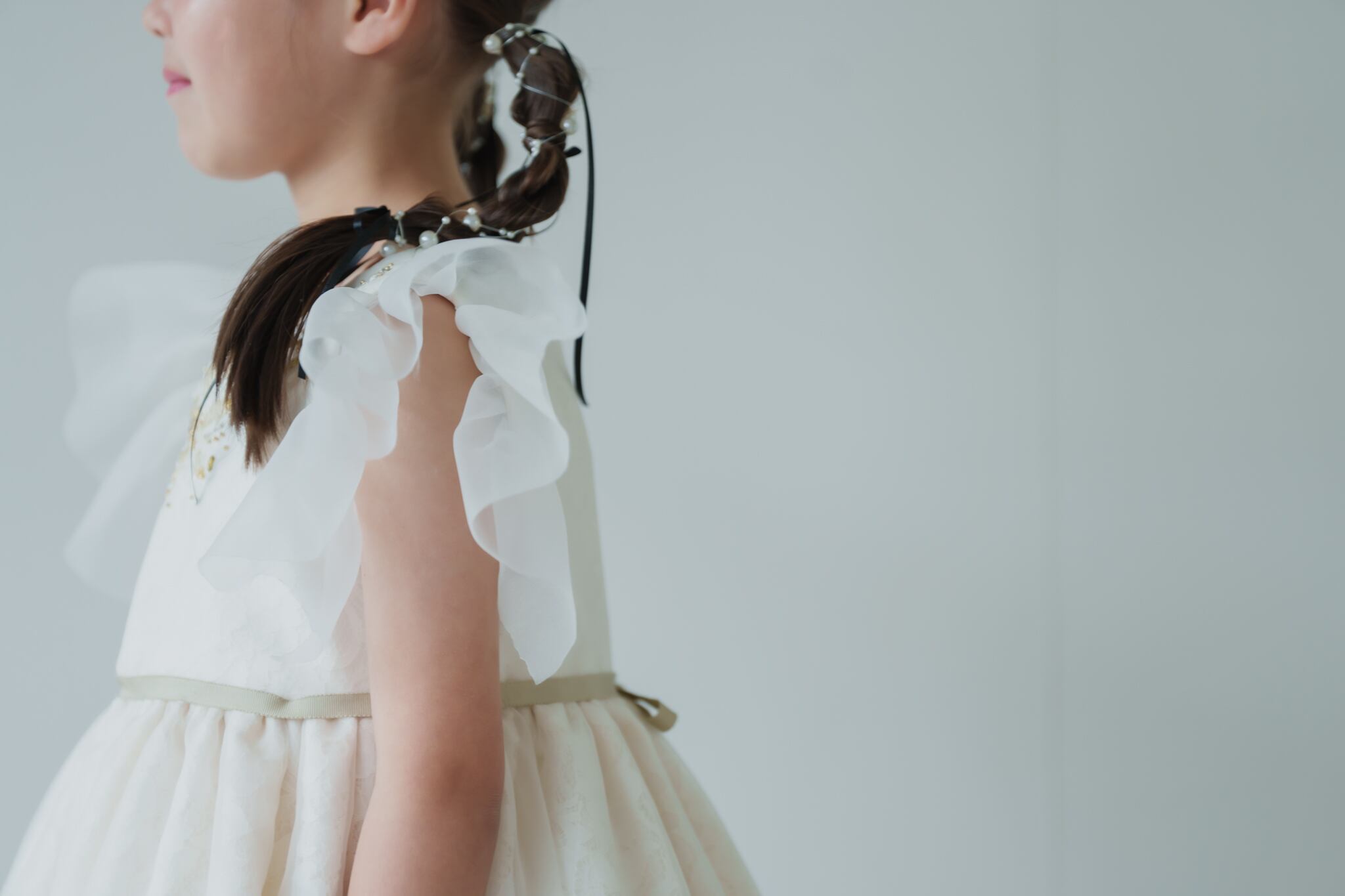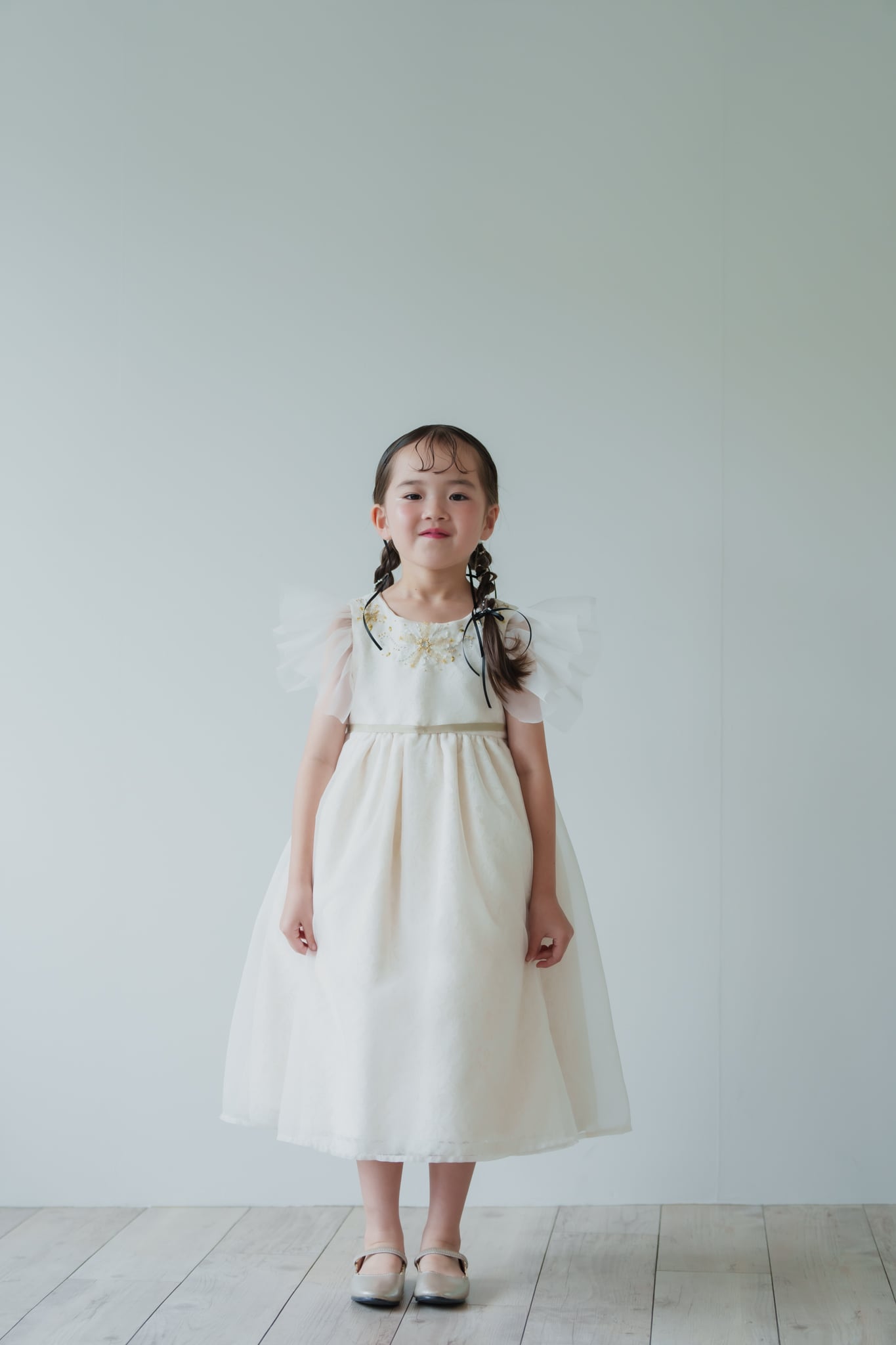 胸元にはゴールド・シルバーをミックスしたビーズの細工・手刺繍を施し華やかな印象に仕上がりました。