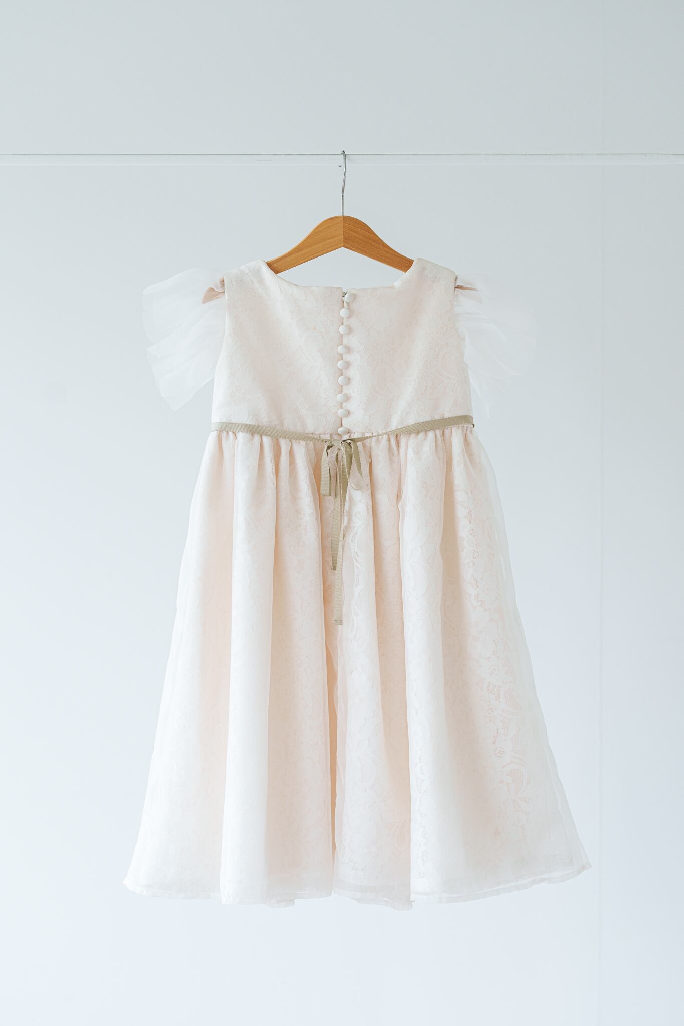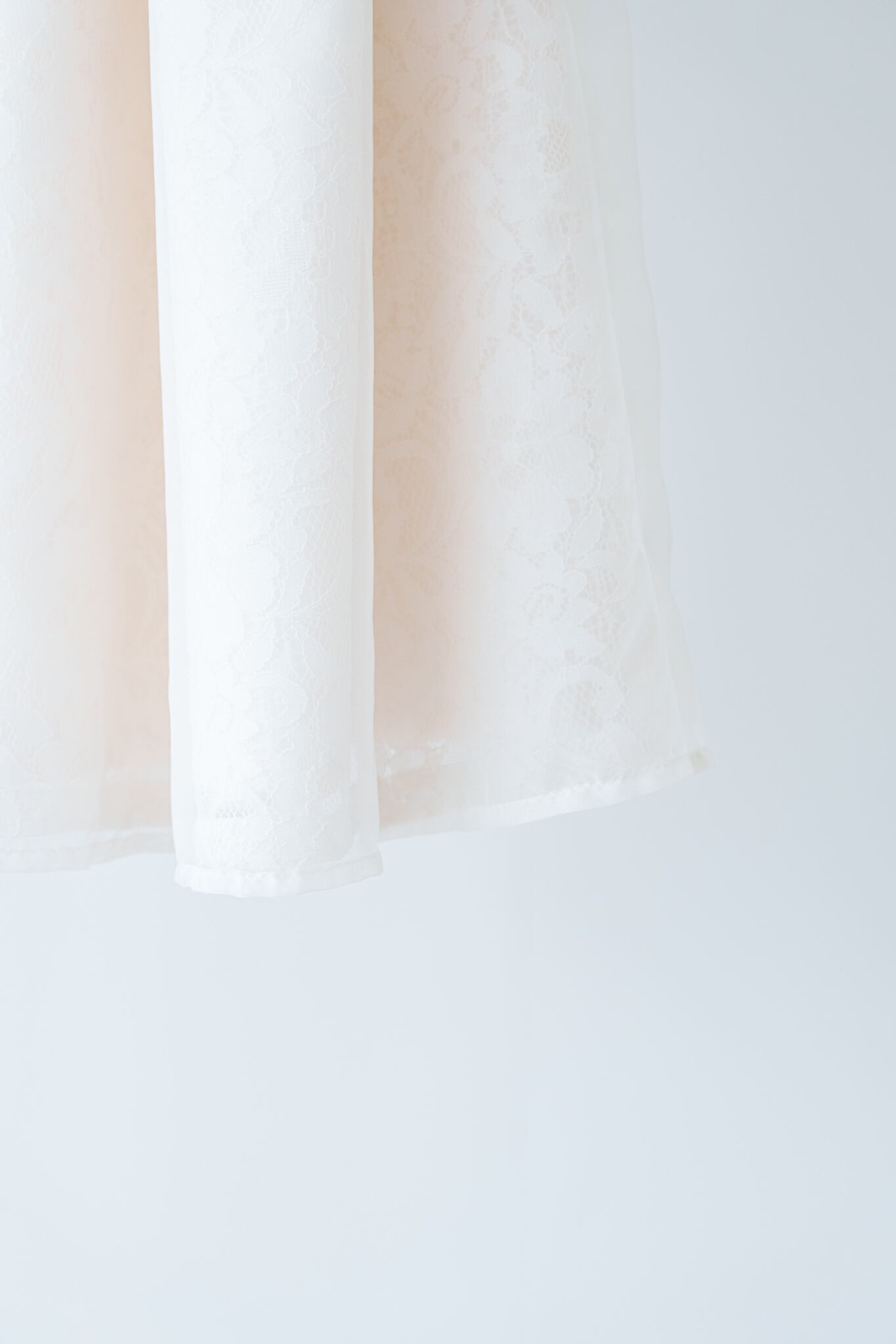 ほんのりピンクがかった土台生地・レースにオーガンジーが重なり上品な透明感があります。