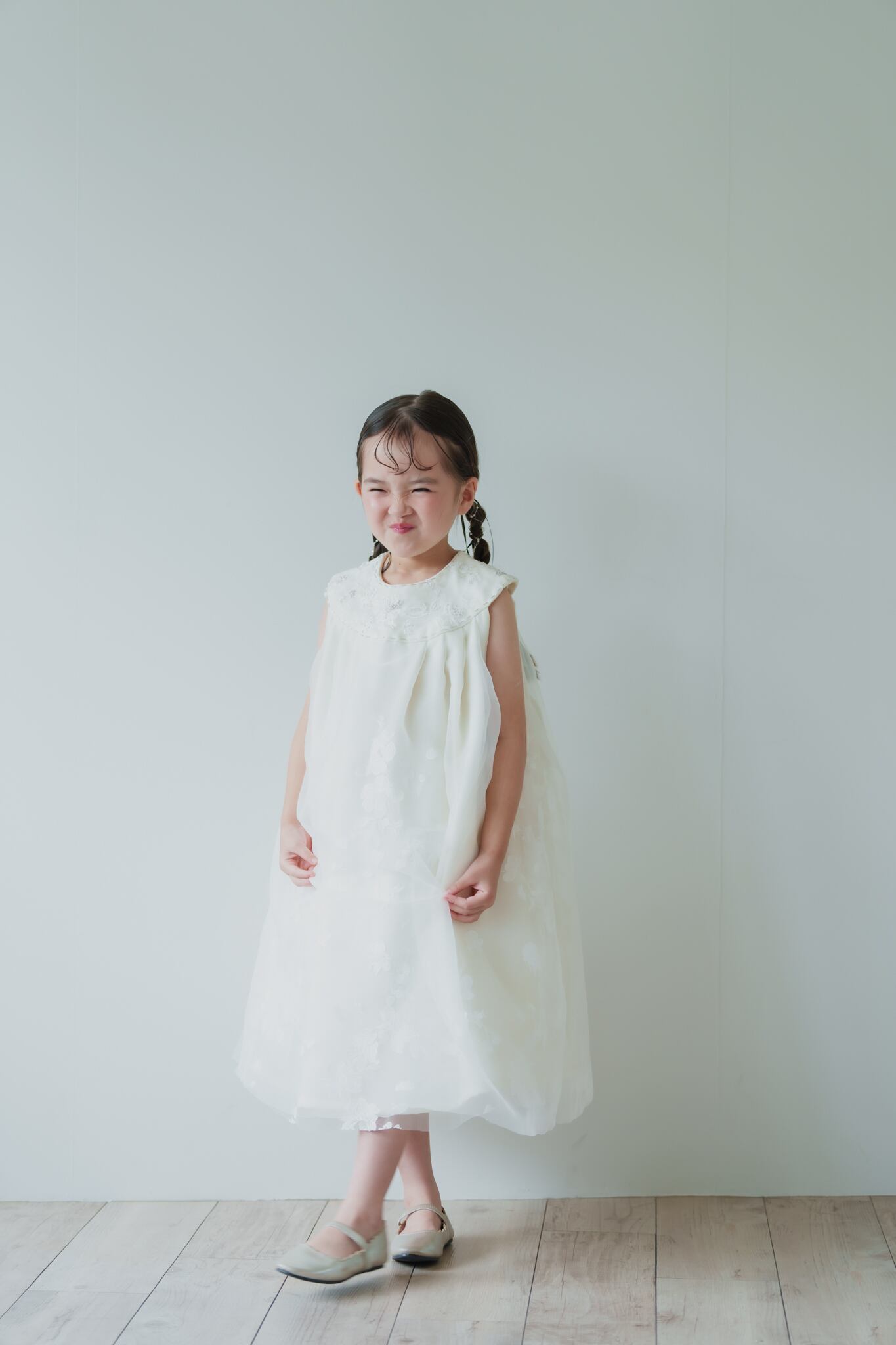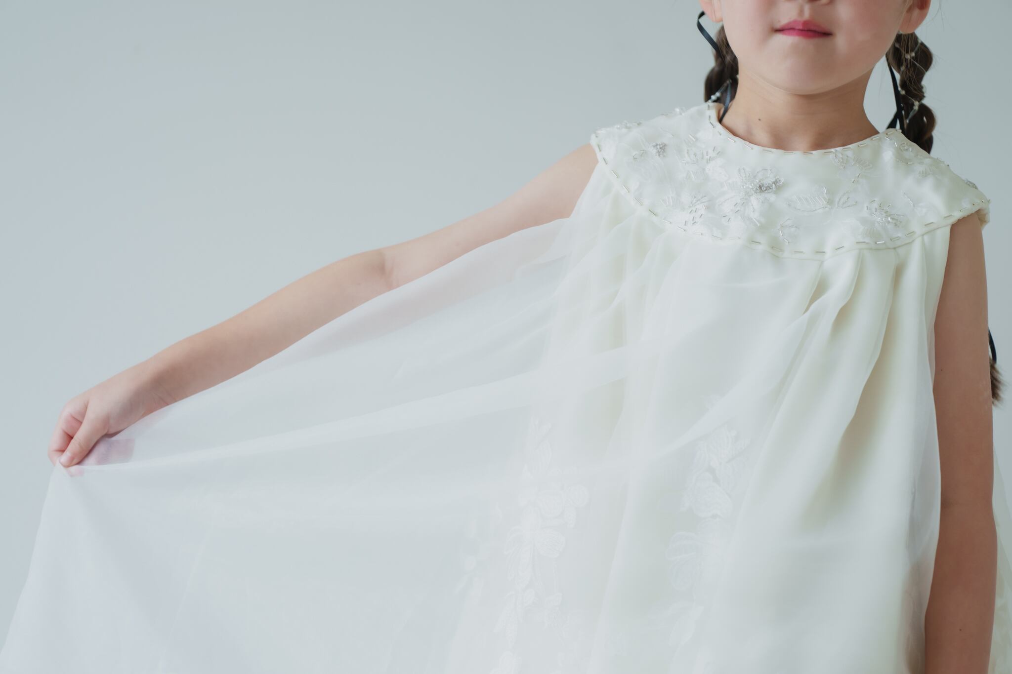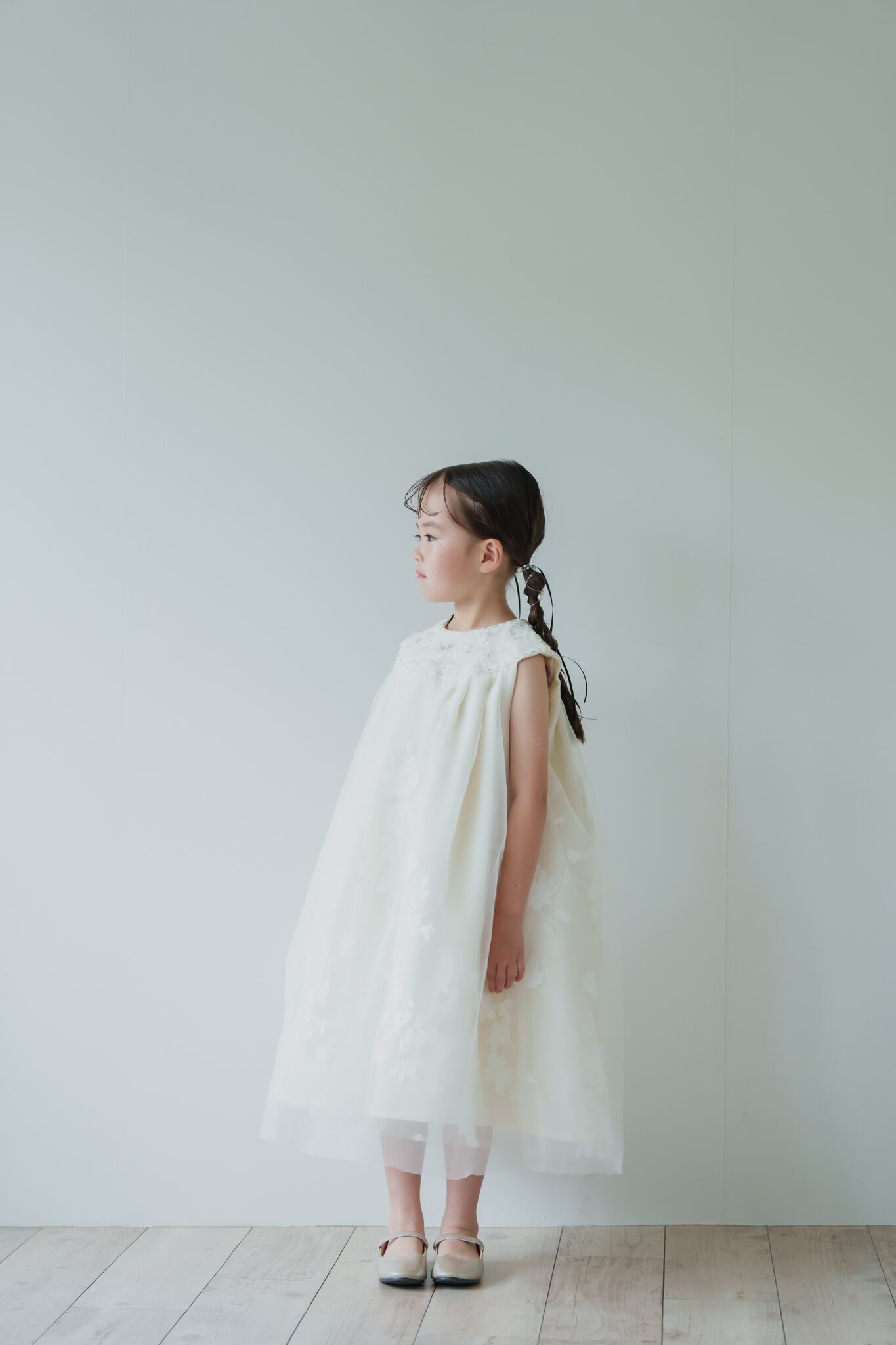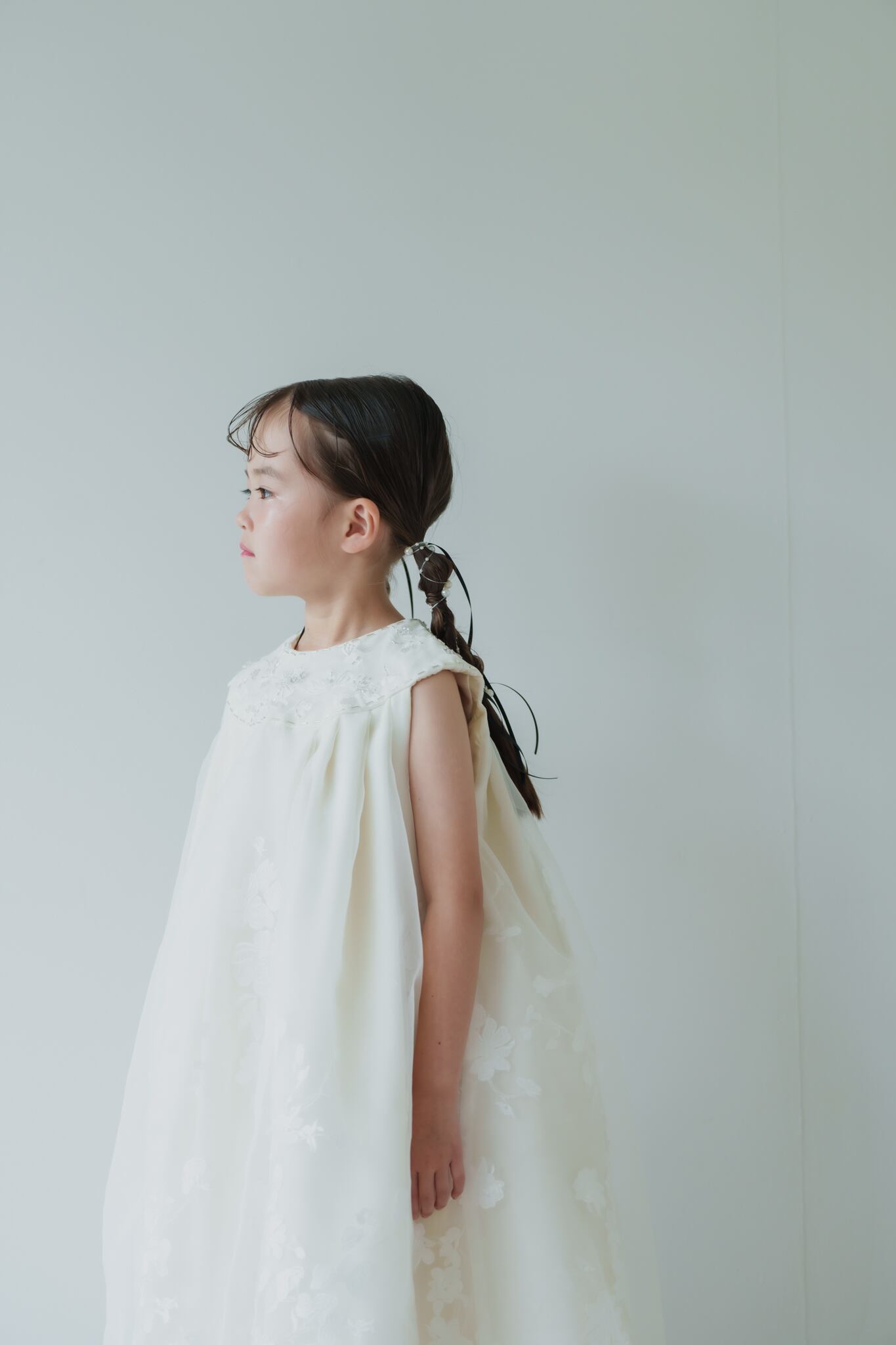 立体的なお花の刺繍がドレスに散りばめられているイメージです。